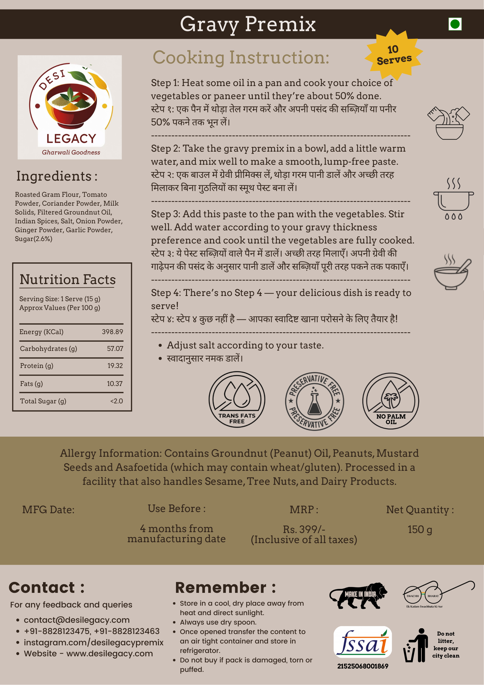 Rediscover the heart of Indian cuisine with our Gravy Mix—a flavorful base made with handpicked spices, roasted onions, and tomatoes. Whether you're making paneer, vegetables, or meat dishes, this mix gives you a rich, slow-cooked taste in minutes. No chopping, no grinding—just pour, cook, and savor